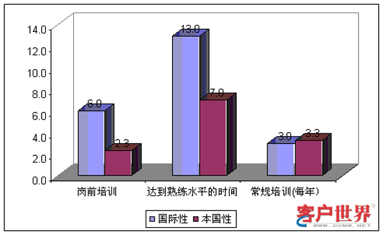 本地性呼叫中心的工作強(qiáng)度明顯高于國(guó)際性呼叫中心。本地性呼叫中心平均每天處理100位客戶的要求而國(guó)際性呼叫中心僅處理90位。這一區(qū)別也表現(xiàn)在平均通話時(shí)間上面。本地性呼叫中心的平均通話時(shí)間是4.3分鐘而國(guó)際性呼叫中心是8分鐘。
