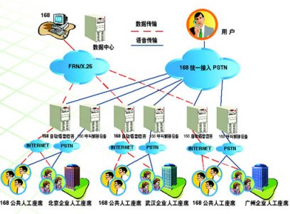 2、分布式接入服務(wù)功能:"企業(yè)客戶服務(wù)系統(tǒng)"為企業(yè)分布式的人工座席提供接入服務(wù)。當(dāng)某個城市的消費(fèi)者在使用168電話中自動語音應(yīng)答功能時,只要按"0"號鍵,電話就會被轉(zhuǎn)到企業(yè)在的當(dāng)?shù)胤⻊?wù)人員座席上,由專業(yè)人員來提供服務(wù)支持。此種功能適合于在多個城市設(shè)立人工座席的企業(yè)用戶。