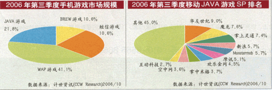 目前,中國手機(jī)用戶已經(jīng)突破4億。今年10月,計世資訊發(fā)布的調(diào)查報告說,2006年,中國手機(jī)游戲市場規(guī)模將超過18億元人民幣;稍早些時候,易觀國際的調(diào)查報告則顯示,今年中國的手機(jī)游戲市場規(guī)模接近22億元人民幣,到2008年時將超過60億元人民幣。在全球,手機(jī)游戲市場以每年超過40%的速度增長,已經(jīng)超過音樂和其他無線增值服務(wù),成為未來無線增值服務(wù)的明星業(yè)務(wù)。