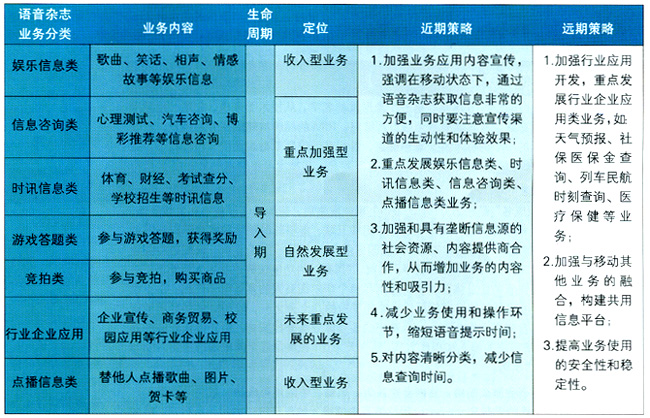 總之,借鑒國際經(jīng)驗(yàn),考慮本國實(shí)情,筆者認(rèn)為,今后國內(nèi)IVR的業(yè)務(wù)結(jié)構(gòu)將會(huì)逐步在發(fā)展中得到改善,雖然說針對(duì)個(gè)人提供的語音娛樂類、點(diǎn)播類業(yè)務(wù)在近期仍會(huì)占主體,但信息咨詢類、行業(yè)應(yīng)用類和數(shù)據(jù)類業(yè)務(wù)的比例將會(huì)逐步提高,而形式、內(nèi)容相對(duì)空泛的游戲答題類業(yè)務(wù)在經(jīng)過近兩年的繁榮期后,占比和規(guī)模都將會(huì)逐步回落到一個(gè)穩(wěn)定的水平。