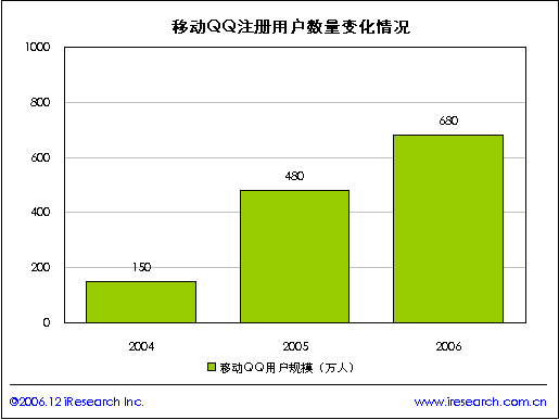 近兩年移動QQ的市場規(guī)模迅速擴大,iResearch研究結果顯示2006年移動QQ用戶規(guī)模達到680萬人,移動QQ所帶來的現金收入成為騰訊上市公司最重要的收入之一。移動IM與互聯網IM最大的不同在于產業(yè)鏈移動運營商的參與。艾瑞認為互聯互通是移動IM產業(yè)整合和發(fā)展必然趨勢。