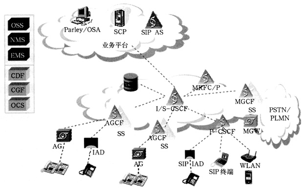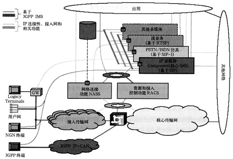 業(yè)務層包括下面的元素:PSTN/ISDN模擬子系統(PSS)即IMS核心子系統、PSTN/ISDN仿真子系統(PES)、其他多媒體子系統(如流媒體子系統、內容多播子系統等)和應用以及可以用于多個子系統的公共元素(如接入應用、計費功能、用戶屬性管理、安全管理和路由管理等);傳送層為用戶終端提供了基本的IP連接的能力,其中的網絡附屬子系統(NASS)和資源認證控制子系統(RACS)屏蔽了IP層以下的接入網/核心網所使用的傳送技術,給固網NGN用戶終端提供了IP的連續(xù)性。