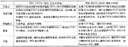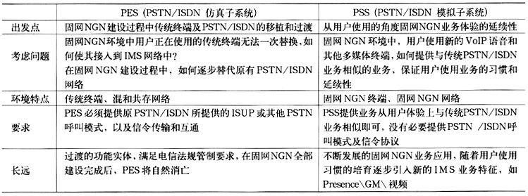 業(yè)務層的PSS和PES子系統針對不同的終端類型和業(yè)務需求而設計。使用PSS和PES主要目的是使寬窄帶域完全分離,即SIP用戶通過PSS子系統完成接入和業(yè)務提供,窄帶用戶通過PES子系統完成接入和業(yè)務提供。具體比較如表2所示。