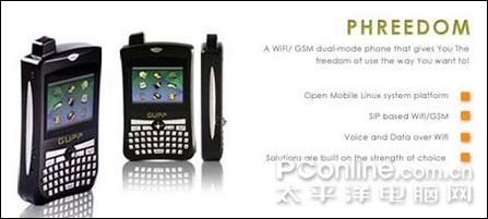 很多技術分析人士都認為,VoWiFi的下一波功能將主要集中在雙模手機上,即手機擁有Wi-Fi IP電話功能和普通蜂窩電話功能。當用戶位于家中、辦公室或公共Wi-Fi熱點區(qū)域,可以使用Wi-Fi IP電話功能進行通話,而在沒有Wi-Fi網絡的地區(qū),則可以使用傳統(tǒng)的蜂窩網絡進行通話。不論采用哪種網絡,用戶的手機號碼是唯一的。由于通過Wi-Fi網絡撥打IP電話的費用要低于現(xiàn)有的固定電話,因此未來這種電話很可能會取代大部分用戶目前使用的固定電話。下圖為GUPP公司最新推出的VoWiFi/GSM雙模Linux智能手機PHREEDOM