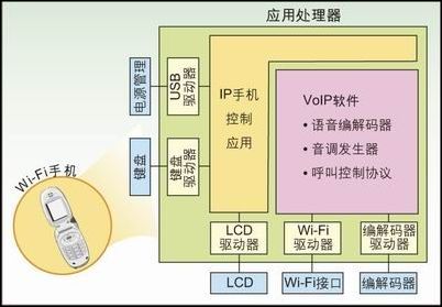 在這些設計中,一般的人機界面(MMI)以及VoIP通話控制功能使用傳統(tǒng)的應用處理器(ARM、MIPS等),而DSP則用于語音到數(shù)據(jù)包到語音的轉換。此方法在便攜設備的設計中暴露出很多缺點。