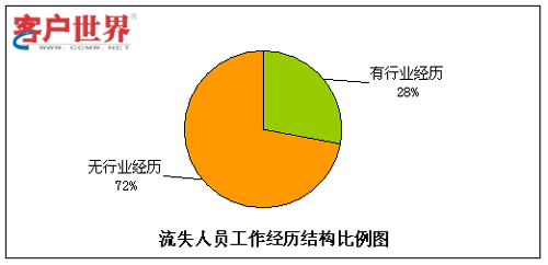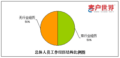 呼叫中心由于高壓力、24小時(shí)輪班等工作特性,有相當(dāng)比例的流失是因?yàn)椴贿m應(yīng)工作環(huán)境而導(dǎo)致的,其中一個(gè)主要原因就是新入職員工想象中的工作環(huán)境和現(xiàn)實(shí)情況大相徑庭。而有呼叫中心工作經(jīng)驗(yàn)的員工對于這點(diǎn)的適應(yīng)性相對較強(qiáng),因此我們對呼叫中心員工是否有行業(yè)經(jīng)歷方面的情況進(jìn)行了統(tǒng)計(jì)分析。
