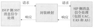 由于ISUP在SIP網絡中是透明傳送的,因此MGC就需要完成ISUP同SIP信令的轉換。呼叫信令的轉換,最直觀的方法就是翻譯。MGC根據(jù)確定的對應關系對SIP消息和ISUP消息進行映射,MGC收到一條ISUP消息后,需要理解ISUP消息中的關鍵信息并進行翻譯,然后填入SIP頭部及SIP消息體中。翻譯過程一定是一一對應的。例如,IAM翻譯成INVITE,ACM翻譯成Ringing,REL翻譯成BYE等等。也就是說逐條地取出A信令消息參數(shù)值,映射到B信令消息體中,再接著傳送。下面就對主要的信令消息的映射做一下簡單的分析。