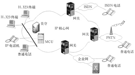 圖1 基于H.323VoIP網(wǎng)絡(luò)體系示意圖