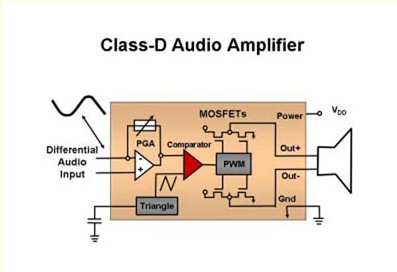 在音頻解決方案中進行折衷與音頻處理性能、音頻輸出功率、熱耗散和整體的功耗有關。傳統(tǒng)的音頻方案由兩到三個受AB類音頻功率放大器驅(qū)動的揚聲器構成。然而,相對于它的整個音頻輸出而言,AB類放大器的工作固有地生成大量的熱。這些積聚起來的高溫因為需要大的散熱片來散發(fā)熱量,所以,在大多數(shù)薄形狀因子的平面電視中禁止采用AB類放大器。為了解決這個問題,業(yè)界采用了D類放大器技術(圖3)。目前,輸出場效應三極管(FET)可以在截止區(qū)與飽和區(qū)之間切換,從而提供比AB類放大器更高的效率。現(xiàn)有的音頻解決方案容許你完全利用數(shù)字信號路徑。這不僅僅最大化音頻效率,而且,它們也提供有效的處理和大于110dB的信噪比(SNR)。