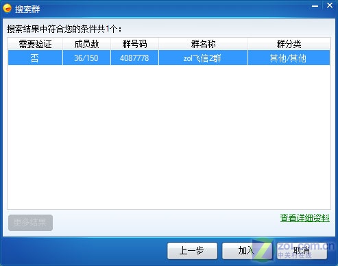 如果你搜索的群已經(jīng)存在,那么程序?qū)?huì)列出搜索到群號(hào),選中后單擊“加入”即可(如圖11)。