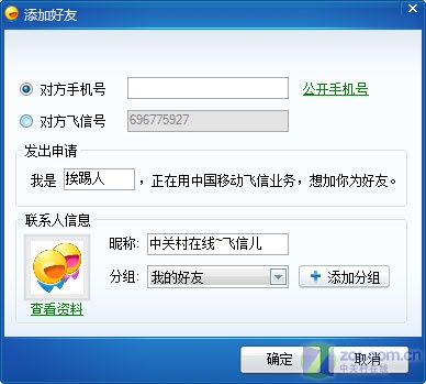 第一次登錄使用飛信的朋友可以通過兩個(gè)方式獲取好友,一個(gè)是將自己的號(hào)告知好友,讓他們將你加為好友,另一個(gè)是自己查找并添加其他好友(如圖2)。