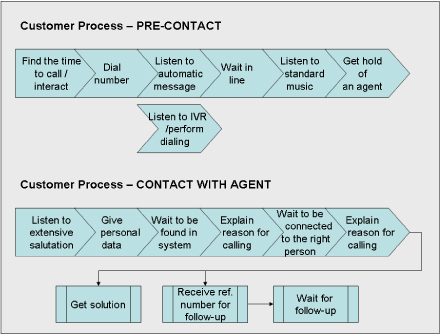 那么,從企業(yè)內(nèi)部的觀點(diǎn)出發(fā)看我圍繞這次簡(jiǎn)單的預(yù)定流程所產(chǎn)生的總體客戶體驗(yàn)如何呢?這需要好好評(píng)估,我一共只打了兩次電話并在24小時(shí)內(nèi)得到解決,而且我們之間的互動(dòng)——很有可能——已經(jīng)被記錄在航空公司的CRM系統(tǒng)中。但是如果你問(wèn)問(wèn)作為客戶的我,我會(huì)給出一個(gè)完全不同的場(chǎng)景描述:首先,提供給我的可聯(lián)絡(luò)電話號(hào)碼實(shí)在太多了,其次,沒(méi)有說(shuō)明這些電話號(hào)碼處理的“范圍”各是什么,再次代理質(zhì)量不合格,她完全不知道自己該干什么,還得求助于另外一個(gè)同事,最后,也是很重要的一點(diǎn),最終提交的解決方法并不能讓人接受。這些信息——或者說(shuō)的更準(zhǔn)確些,客戶的評(píng)價(jià)——出現(xiàn)在呼叫中心的報(bào)告里了嗎?出現(xiàn)在哪兒?沒(méi)有,這一方面是因?yàn)榱鞒滩⒉皇且钥蛻魹橹行牡挠^點(diǎn)來(lái)定義的,另一方面因?yàn)槲覀兪侨,我們努力的在工作,不希望自己變成透明人?