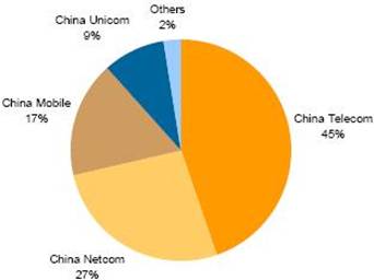 圖2:2007年中國運(yùn)營商Wi-Fi熱點(diǎn)市場份額 (占單位布署量的百分比)