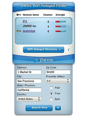 當你需要進行緊急無線接入時,有一種方便、免費能找到附近熱點的辦法。運行這個程序并輸入你所在的位置,這個程序?qū)⒘谐龈浇乃袩狳c。它將幫你搜索到付費的或免費的熱點,并保持程序數(shù)據(jù)庫的頻繁更新。