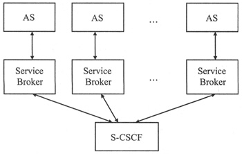 分布式控制方式為每一個(gè)AS都配置一個(gè)ServiceBroker,S-CSCF把每個(gè)ServiceBroker都視作AS,通過ISC接口與其交互。S-CSCF將請(qǐng)求觸發(fā)給ServiceBroker,AS執(zhí)行完后,Service