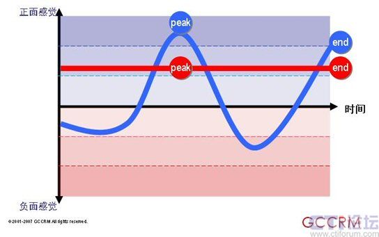 紅色情感曲線代表旨在提供全面理想體驗的傳統(tǒng)方法。藍色情感曲線反映的是一種資源分配的新方法,它專注于峰值和終了這兩個關鍵點同時將剩余子流程的表現(xiàn)控制在平均水平之下?此菩瘦^低的那個(藍色情感曲線)