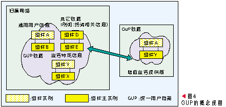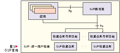 GUP中一個(gè)用戶相關(guān)的數(shù)據(jù)由多個(gè)數(shù)據(jù)組件構(gòu)成,每個(gè)組件又可以包含多個(gè)數(shù)據(jù)單元。在網(wǎng)絡(luò)中用戶數(shù)據(jù)每個(gè)數(shù)據(jù)組件只有一個(gè)主實(shí)例,但是可以有多個(gè)復(fù)制實(shí)例。用戶數(shù)據(jù)以組件為單元可以存放在不同的網(wǎng)絡(luò)實(shí)體中,應(yīng)用可以通過(guò)統(tǒng)一的訪問(wèn)入口以標(biāo)準(zhǔn)接口訪問(wèn)所有授權(quán)的數(shù)據(jù),這個(gè)入口功能由GUP
