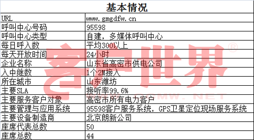 山東省高密市供電公司95598客戶服務調(diào)度指揮中心