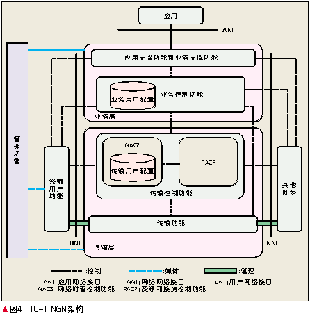 下一代網(wǎng)絡(luò)(NGN)的標(biāo)準(zhǔn)是當(dāng)前通信標(biāo)準(zhǔn)領(lǐng)域的熱點(diǎn)研究課題之一,對(duì)NGN架構(gòu)的研究主要在高級(jí)網(wǎng)絡(luò)電信與因特網(wǎng)融合業(yè)務(wù)和協(xié)議(TISPAN)組織和國際電信聯(lián)盟電信標(biāo)準(zhǔn)部(ITU-T)兩大國際標(biāo)準(zhǔn)組織內(nèi)進(jìn)行。
