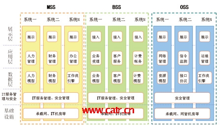 各大運(yùn)營企業(yè)基本建成了較為完整的運(yùn)營支撐系統(tǒng)的框架體系,功能點(diǎn)覆蓋了企業(yè)運(yùn)營管理的各個方面,有力地支撐了從業(yè)務(wù)運(yùn)營、客戶服務(wù)、市場營銷到網(wǎng)絡(luò)管理、企業(yè)信息化管理等各項(xiàng)工作。同時(shí),也存在著諸如系統(tǒng)“遍地開花”、功能重疊等現(xiàn)象,這些都需要在今后的建設(shè)工作中逐步解決。