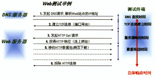 在用戶對(duì)無線數(shù)據(jù)業(yè)務(wù)的訪問過程中,通常會(huì)包含多個(gè)階段(業(yè)務(wù)處理過程)。如當(dāng)用戶在使用手機(jī)要瀏覽網(wǎng)頁的時(shí)候,先輸入網(wǎng)頁的地址,然后按手機(jī)上的“訪問”按鈕,一段時(shí)間后手機(jī)的屏幕上就會(huì)顯示出要瀏覽的網(wǎng)頁頁面?此坪唵蔚倪^程,其實(shí)這里面包含了以下幾個(gè)步驟:DNS查找時(shí)間、TCP連接時(shí)間、服務(wù)器響應(yīng)時(shí)間和數(shù)據(jù)下載時(shí)間。在這中間,只要任何一步出了問題,如DNS解析時(shí)間過長、TCP連接建立時(shí)間過長、應(yīng)用服務(wù)器負(fù)載過重、網(wǎng)絡(luò)可用信道資源少而造成數(shù)據(jù)下載慢,都可能會(huì)造成頁面下載失敗。因此,為了能準(zhǔn)確地定位造成用戶對(duì)Web服務(wù)質(zhì)量感知度差的原因,我們就需要得到各階段的性能參數(shù),這樣才能快速地進(jìn)行相關(guān)服務(wù)器和網(wǎng)絡(luò)的故障查找并解決問題。