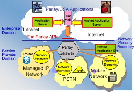 從圖中可以看到,OSA的基本思路是,把電信網(wǎng)絡(luò)的服務(wù)抽象成為一個(gè)特定的接口。這個(gè)接口的名稱現(xiàn)在被我們稱為Parlay。建立在OSA基礎(chǔ)之上的服務(wù)可以利用Parlay這個(gè)接口很容易的使用電信網(wǎng)絡(luò)中的服務(wù)而不用去關(guān)心這些接口是如何實(shí)現(xiàn)的。例如我們的一個(gè)多媒體服務(wù)希望給一個(gè)用戶發(fā)送一條短信以通知他某個(gè)事件的發(fā)生,那么這個(gè)服務(wù)需要做的是告訴Parlay這個(gè)接口需要給哪個(gè)用戶發(fā)送什么樣的內(nèi)容的信息,而不需要了解在移動(dòng)網(wǎng)絡(luò)中原來(lái)是使用SMPP這樣的協(xié)議來(lái)實(shí)現(xiàn)短信的傳送的,又或者也不用去考慮在一個(gè)IP網(wǎng)絡(luò)中我們可以用SMTP這樣的協(xié)議來(lái)實(shí)現(xiàn)他。