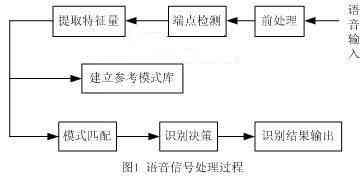由圖1可知,軟件系統(tǒng)的設(shè)計(jì)主要包括端點(diǎn)檢測、特征量提取和模式匹配。