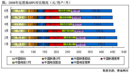 圖:2009年運營商ARPU對比情況