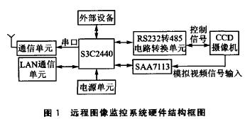 在嵌入式領域,ARM9系列微處理器在高性能和低功耗方面提供了最佳的性能,因此選用ARM9嵌入式處理器S3C2440設計實現(xiàn)了一個遠程圖像光線監(jiān)控系統(tǒng)通過這個系統(tǒng),可以遠在千里之外控制一個攝像機進行圖像采集并回傳。如果這個攝像機有一個485接口的云臺,還可以通過互聯(lián)網(wǎng)遠程控制攝像機的取景角度、鏡頭拉伸、聚焦等功能.