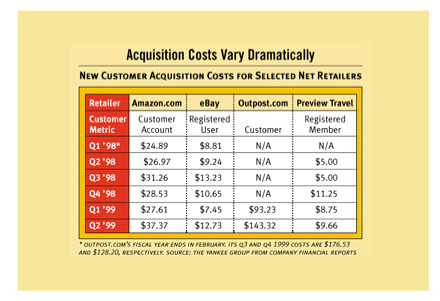 上世紀(jì)90年代末期DOT.COM就遭遇了這一嚴(yán)峻問(wèn)題。70% - 80%的客戶(hù)在沒(méi)有完成采購(gòu)之前就棄網(wǎng)站而去。對(duì)于許多人來(lái)說(shuō)這被認(rèn)為是一個(gè)“行業(yè)基準(zhǔn)”,屬于可接受水平,但也有些人開(kāi)始尋找解決方案。整個(gè)行業(yè)開(kāi)始注意到分析家們的忠告:這一水平的放棄率是不被允許的。下面這張由Yankee集團(tuán)在2000年發(fā)布的表格向我們展示了電子商務(wù)企業(yè)客戶(hù)獲取成本螺旋形盤(pán)升的過(guò)程。