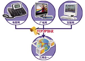 所謂三網(wǎng)融合,就是在同一個(gè)網(wǎng)上實(shí)現(xiàn)語音、數(shù)據(jù)和圖像的傳輸。對用戶而言,就是指只用一條線路可以實(shí)現(xiàn)打電話、看電視、上網(wǎng)等多種功能。