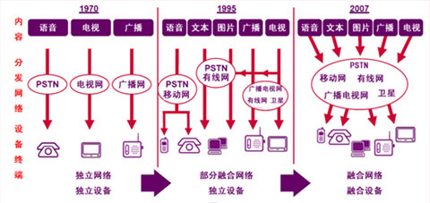 2010年1月13日,國務(wù)院常務(wù)會(huì)議決定加快推進(jìn)電信網(wǎng)、廣播電視網(wǎng)和互聯(lián)網(wǎng)三網(wǎng)融合。5年內(nèi)全面實(shí)現(xiàn)電信網(wǎng)、廣播電視網(wǎng)和互聯(lián)網(wǎng)三網(wǎng)融合,并明確提出階段性目標(biāo)和重點(diǎn)工作。