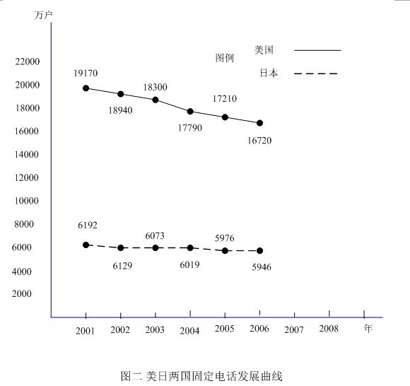 固定電話受沖擊的程度在電信界美國比日本更加突出,這是因?yàn)槊绹蟮耐ㄐ殴,除了提供電話、電視和高速上網(wǎng)捆綁服務(wù)外,基本上不提供IP電話(普通電話機(jī)要經(jīng)本地市話交換機(jī)再通過網(wǎng)關(guān)進(jìn)入因特網(wǎng))和VoIP電話(普通電話機(jī)經(jīng)TA到因特網(wǎng))。據(jù)今日美國報(bào)報(bào)導(dǎo),全國衛(wèi)生統(tǒng)計(jì)中心(National Centerfor Health Statistics)最近公布的數(shù)據(jù)顯示,2007年下半年,美國全國每6個(gè)家庭中,就有1家只有移動(dòng)電話,而沒有固定電話,已占到15.8%,這一比例在2004年同期只有6.1%。調(diào)查還發(fā)現(xiàn):
