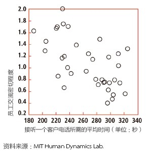 去年,彭特蘭的實(shí)驗(yàn)室與美國銀行(Bank of America)設(shè)在羅得島(Rhode Island)的呼叫中心合作,在80 名中心員工身上安裝了社會(huì)傳感器。這種傳感器看起來像一枚不顯眼的徽章,使用藍(lán)牙和紅外信號(hào)監(jiān)測實(shí)驗(yàn)對(duì)象每分鐘與哪些同事交談。測試活動(dòng)先開展了一個(gè)月,后來又進(jìn)行了6周。第一個(gè)月后,實(shí)驗(yàn)室的研究人員發(fā)現(xiàn),與更多同事進(jìn)行過交談的員工能夠更快地接通電話,他們自我感覺的壓力也相對(duì)較小,而客戶滿意度卻與其他人一樣高。與刻板地遵循員工手冊(cè)或服從經(jīng)理的電子郵件指示相比,通過非正式的閑聊來交流問題和解決方案似乎能取得更好的結(jié)果。有了這種結(jié)論之后,該呼叫中心嘗試盡量將員工的休息時(shí)間安排在一起,而非像過去那樣錯(cuò)開。這樣員工就有了更多的時(shí)間參與閑聊。幾個(gè)月后,美國銀行向?qū)嶒?yàn)室報(bào)告了結(jié)果:該呼叫中心獲得了相當(dāng)于每年1,500 萬美元的生產(chǎn)力提升。