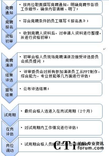 如何進(jìn)行內(nèi)部選拔 為營造公開、公平、公正的內(nèi)部人才選拔環(huán)境,使符合條件的員工均有參與的機(jī)會(huì)和權(quán)利,內(nèi)部選拔人才一般采用競聘模式。下圖為參考流程: