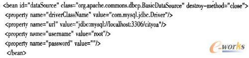 與本地開發(fā)不同的是云計算平臺下,由于服務器采用虛擬主機技術(shù),無法像本地服務器那樣配置數(shù)據(jù)庫連接池,因此需要CRM系統(tǒng)自己管理數(shù)據(jù)庫連接池。本系統(tǒng)使用Spring管理下的數(shù)據(jù)庫連接池,運用Apache開源DBCP框架配置連接池代碼如下: