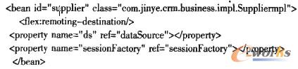 業(yè)務層對象用于實現(xiàn)CRM系統(tǒng)業(yè)務方法,其采用面向接口設計原則,由Spring管理實現(xiàn)類對象,并注入持久層的HibernateSessionFactory對象,業(yè)務對象配置代碼如下:
