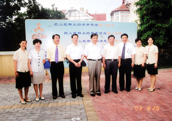 二〇〇三年八月二十日 中共中央政治局委員、書記處書記、中宣部部長(zhǎng)劉云山、副部長(zhǎng)胡振民在山東省委書記張高麗、省委常委、青島市委書記杜世成等領(lǐng)導(dǎo)陪同下視察96111熱線。