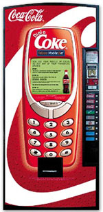 在澳大利亞,澳大利亞電訊和可口可樂公司聯(lián)合發(fā)布了一項(xiàng)新業(yè)務(wù)的試運(yùn)營:“撥打可口可樂”。這項(xiàng)新業(yè)務(wù)使該公司的后付費(fèi)移動(dòng)電話客戶可以使用他們的GSM移動(dòng)電話,在可口可樂售貨機(jī)上購買他們喜愛的飲料。這次試驗(yàn)在悉尼中央車站的17臺(tái)可口可樂售貨機(jī)上進(jìn)行。