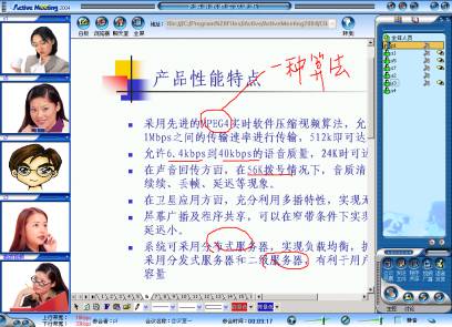 據(jù)該公司技術(shù)總監(jiān)李明先生介紹,Active Meeting2004是為了迎合寬帶運(yùn)營(yíng)而專門設(shè)計(jì)開發(fā)的。首先,服務(wù)器引用"級(jí)聯(lián)"方式,通過(guò)系統(tǒng)服務(wù)器端Active Center的"平衡分流"設(shè)計(jì),使得任何單位的會(huì)議和交流能夠流暢的進(jìn)行。