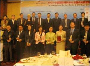 賽迪呼叫執(zhí)行總裁李峻博士榮獲“2005中國(guó)最佳呼叫中心管理人獎(jiǎng)”(第二排左四,代領(lǐng))