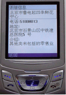 用戶只要在手機的"空中搜"中輸入相關(guān)企業(yè)名稱的一部分信息,例如:新鄉(xiāng) 第二百貨公司,或者輸入產(chǎn)品服務(wù)的名稱,例如:快遞,餐飲,就會搜索到符合其要求的一組企業(yè)信息,少則數(shù)條,多達數(shù)十條,點擊任意一個,都會出現(xiàn)詳細(xì)的相關(guān)信息,信息中包括企業(yè)的電話、地址、企業(yè)介紹等。這樣的一次搜索需要的費用是由搜索產(chǎn)生的數(shù)據(jù)流量費,費用是一分錢,時間是幾秒,信息服務(wù)的提供完全免費。