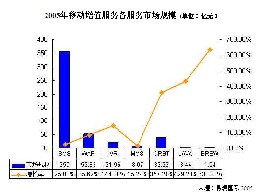SP 提供了發(fā)展的機(jī)會(huì)。雖然2005年市場(chǎng)盤整,在短信、彩信業(yè)務(wù)上有不少 SP 被淘汰,但是在 WAP、JAVA 和第三方應(yīng)用上有很多新進(jìn)入者。