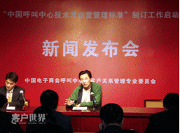 2月7日,中國電子商會呼叫中心與客戶關(guān)系管理專業(yè)委員會(CNCCA)在北京信息產(chǎn)業(yè)部萬壽路辦公區(qū)召開“中國呼叫中心技術(shù)及運(yùn)營管理規(guī)范”制訂工作啟動新聞發(fā)布會。在京各主要新聞媒體高度關(guān)注在國家宏觀政策轉(zhuǎn)向服務(wù)外包的大背景下,呼叫中心中國標(biāo)準(zhǔn)的出臺將為產(chǎn)業(yè)的發(fā)展和國際競爭格局的變化帶來如何的影響。呼叫中心行業(yè)各知名廠商、運(yùn)營商、服務(wù)提供商代表出席新聞發(fā)布會。會議同時發(fā)布了《2007年中國呼叫中心運(yùn)營標(biāo)桿管理報(bào)告》。