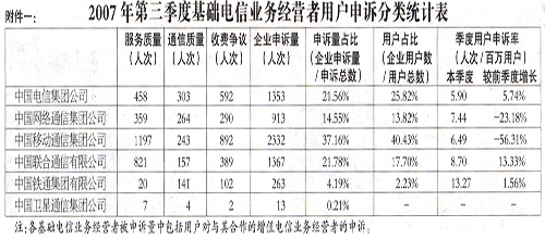 為加強社會監(jiān)督,推進(jìn)電信服務(wù)質(zhì)量持續(xù)改善,根據(jù)《中華人民共和國電信條例》相關(guān)規(guī)定,現(xiàn)將2007年第三季度電信服務(wù)質(zhì)量有關(guān)情況公布如下。