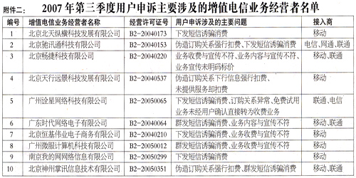 | 增值電信業(yè)務(wù)經(jīng)營許可證年檢“不合格”企業(yè)名單公布 2007-10-26 |