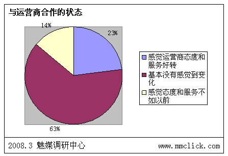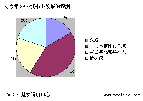 魅媒無線調(diào)研中心認(rèn)為:由于前期政府以及運(yùn)營商對SP行業(yè)的相關(guān)整頓效果明顯,相關(guān)的制度、措施以及管理系統(tǒng)上線后,SP違規(guī)的風(fēng)險已經(jīng)越來越大,行業(yè)自律狀態(tài)較之前有明顯的改善。但是由于部分的制度明顯存在矯枉過正現(xiàn)象,不少的措施嚴(yán)重影響到用戶的體驗,而且對SP管理一直出于消極的狀態(tài),需要不斷調(diào)整。