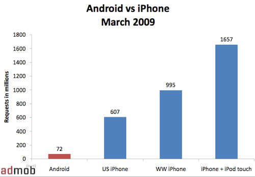 不過(guò),Android仍在iPhone面前相形見(jiàn)絀。根據(jù)AdMob的數(shù)據(jù),在美國(guó)市場(chǎng)上,Android3月的廣告索閱量為7200萬(wàn),iPhone為6.07億;全球市場(chǎng)上,iPhone為9.95億,加上iPodTouch為16.6億。