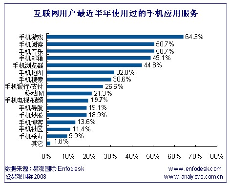 2009年手機游戲、手機閱讀成為用戶最受歡迎的手機應(yīng)用服務(wù)
