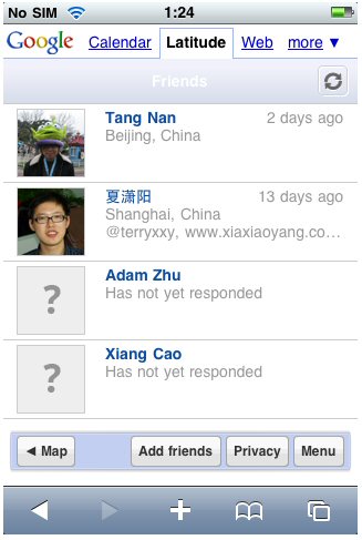 Latitude for iPhone,用你的iPhone訪問這個地址即可:http://m.google.com/latitude